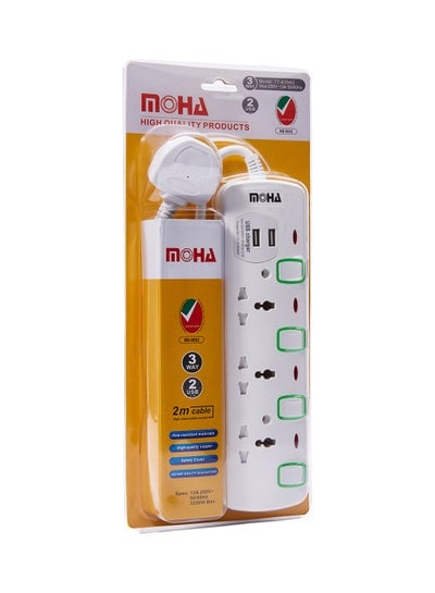 3-Way Socket Power Extension With 2 USB Port White 2meterDhs. 39.14Dhs. 41.00