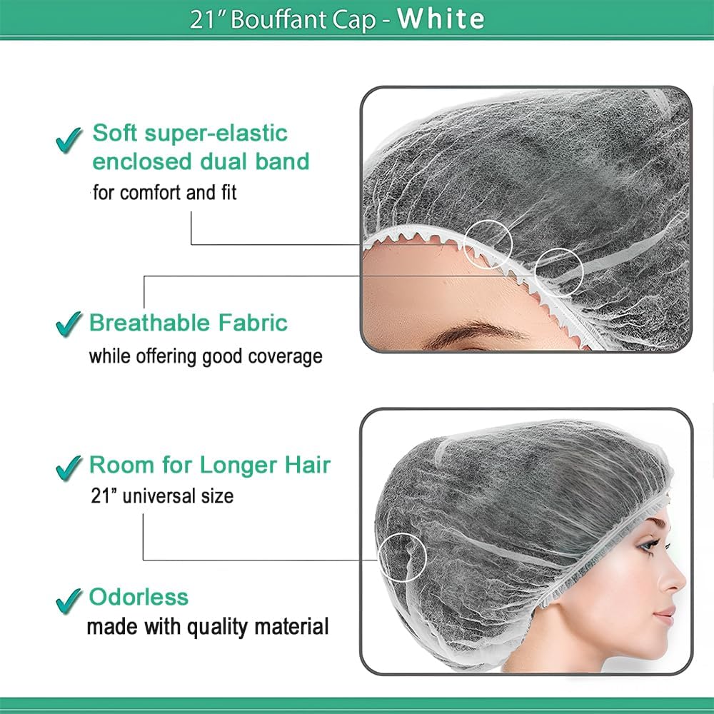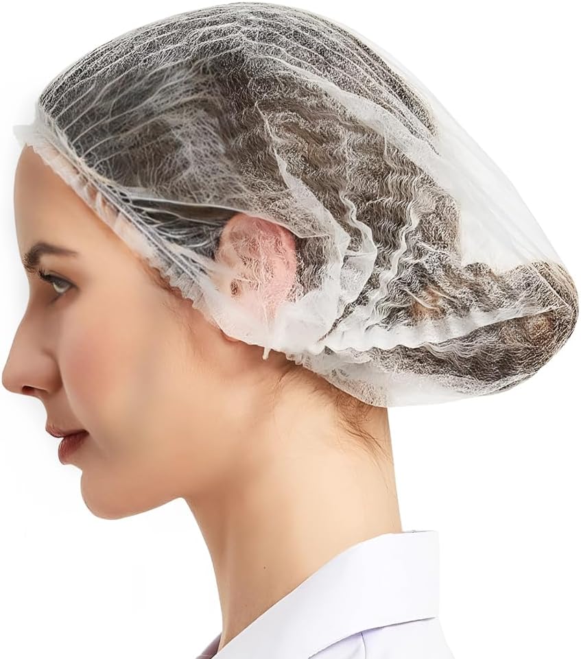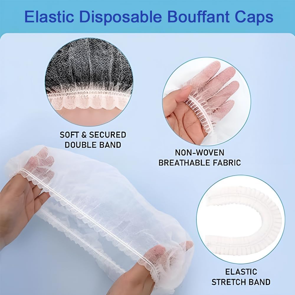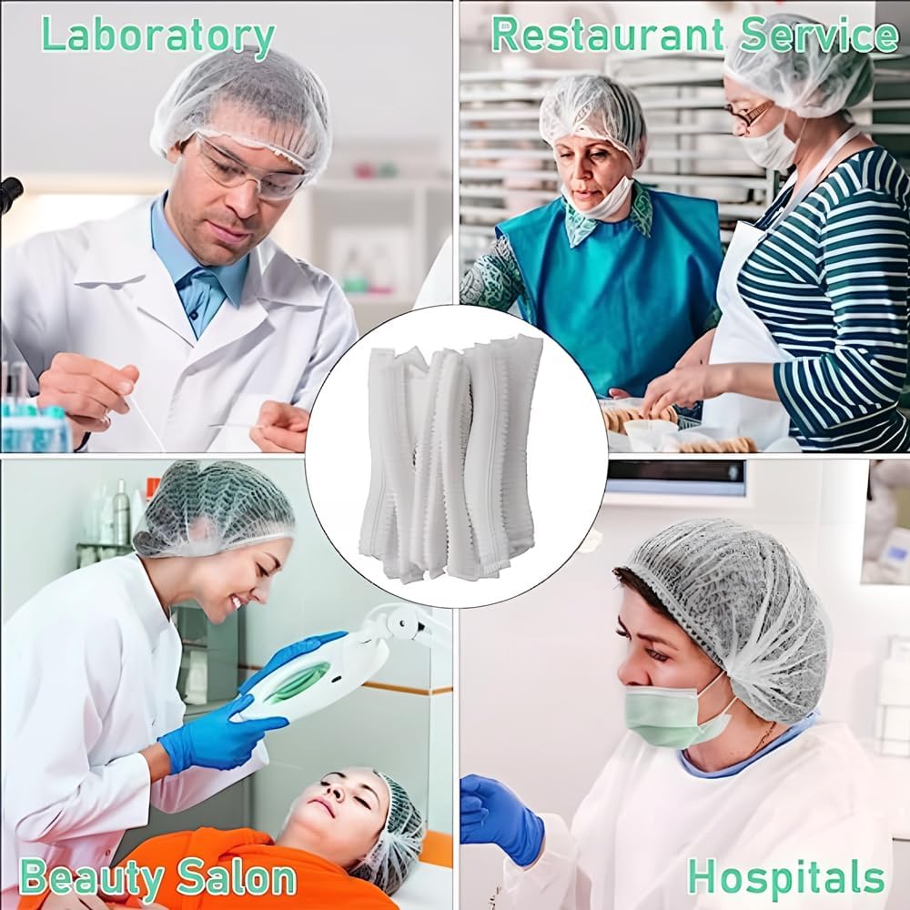 100 Pcs White Disposable Hairnet Head Cover Elastic Bouffant Cap Non-Woven Hair Covering Net for Medical Hospital Lab Restaurants Spa Salons