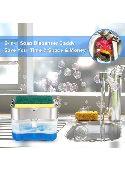 This is 2-in-1 dishwasher soap dispenser is designed to be superior, made of unbreakable ABS plastic making it long-lasting, Sink dispenser with attached caddy holds sponges, scrubbers, rags, scouring pads in one convenient place while keeping water off of kitchen counters, Dispense the perfect amount of soap onto the sponge, extremely easy to use, The container has a large capacity of 13 ounces so that you don’t need to refill it frequently. Works with all kind of liquid soaps, Best for home, school, office, hospital, hotel, restaurant, factories, airport, gas station, and so on,