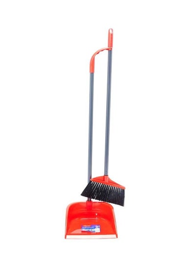 2-Piece Polypropylene Long Handle Broom With Dustpan Set Red/Black