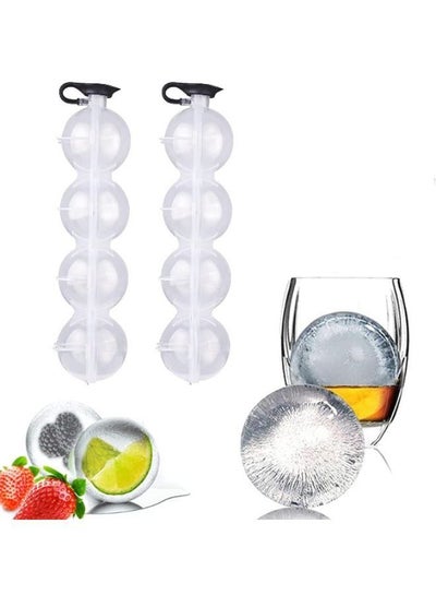 Black silicone lid on one end of the mold, which can effectively prevent the liquid from leaking out and not making a round ice cube., The ice ball mold sphere can not only make ice, but also make exquisite and beautiful desserts., The ice making mold is made of food grade PP material, does not contain harmful substances, and can be used with confidence., Simple and beautiful in shape, and the mold can be opened easily, and the ice puck will fall off easily, which is convenient for access., The ice making mold has four holes and can make four ice balls of the same or different raw materials at the same time.,