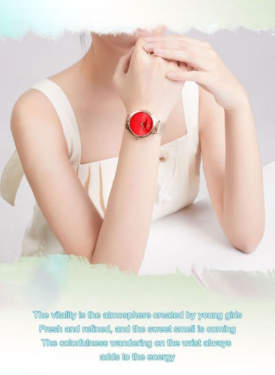 DESIGN INSPIRATION:Collect colorful vitality to kick off the midsummer and,Freeze bright colors and the refreshing design into your wrist,Awake the trend inspiration of vibrant summer,Come to a surprise encounter with cool styling, METAL BRACELET BRINGS YOU A FRESH SUMMER,When you put this watch on your wrist,The exquisite and soft Milanese woven bracelet,Helps you keep the sweet time of wonderful summer, GLITTERY DIAL MAKES YOU MORE SHINY,Well combination of CD pattern and horizontal pattern,Makes this watch more outstanding of its sense of metallic glow.,Glittering with changing light on the surface,It creates a highly recognizable summer style., ANTI-SKIDDING CROWN,Delicate diamond shaped crown makes it more easily to adjust time., HARDENED MINERAL GLASS,High transparency, durable, and scratch-resistant, 3ATM WATERPROOF,Prevent the hand washing, rain splashing, etc. from causing watches to enter the water in daily life.,