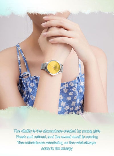 DESIGN INSPIRATION:Collect colorful vitality to kick off the midsummer and,Freeze bright colors and the refreshing design into your wrist,Awake the trend inspiration of vibrant summer,Come to a surprise encounter with cool styling, METAL BRACELET BRINGS YOU A FRESH SUMMER,When you put this watch on your wrist,The exquisite and soft Milanese woven bracelet,Helps you keep the sweet time of wonderful summer, GLITTERY DIAL MAKES YOU MORE SHINY,Well combination of CD pattern and horizontal pattern,Makes this watch more outstanding of its sense of metallic glow.,Glittering with changing light on the surface It creates a highly recognizable summer style., ANTI-SKIDDING CROWN,Delicate diamond shaped crown makes it more easily to adjust time., HARDENED MINERAL GLASS,High transparency, durable, and scratch-resistant, 3ATM WATERPROOF,Prevent the hand washing, rain splashing, etc. from causing watches to enter the water in daily life.,