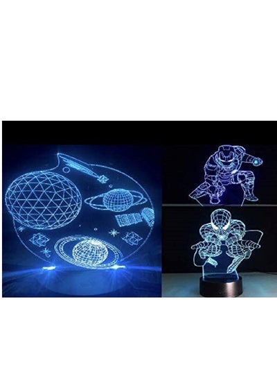 3 in 1 3D Touch Light Multicolour Iron man Spider Man Solar System 3D Night Light Table Lamp