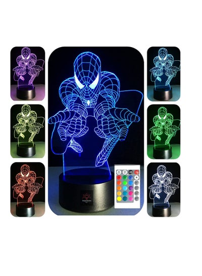 3D Night Lights for Kids 7 Colors 3D LED Illusion Lamp with Remote Control-Bedroom Table Lamp Spiderman