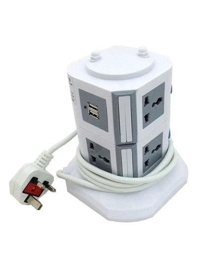 4-Way Multifunction Vertical Extension Socket White/Grey