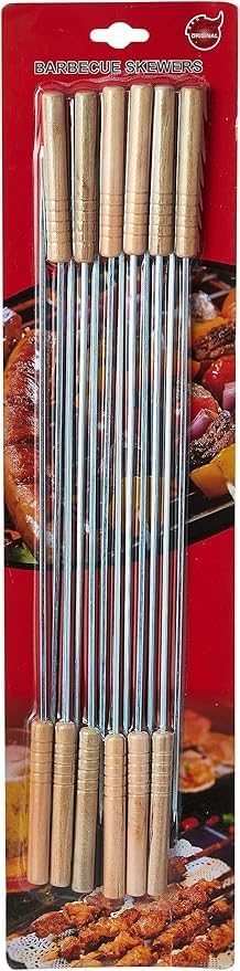 HEXARHexar 12Pcs BBQ Skewers Set with Nonslip Wooden Handle, Stainless Steel Reusable BBQ & Grill Sticks,Premium Grill Sticks for Meat & VeggiesDhs. 11.94