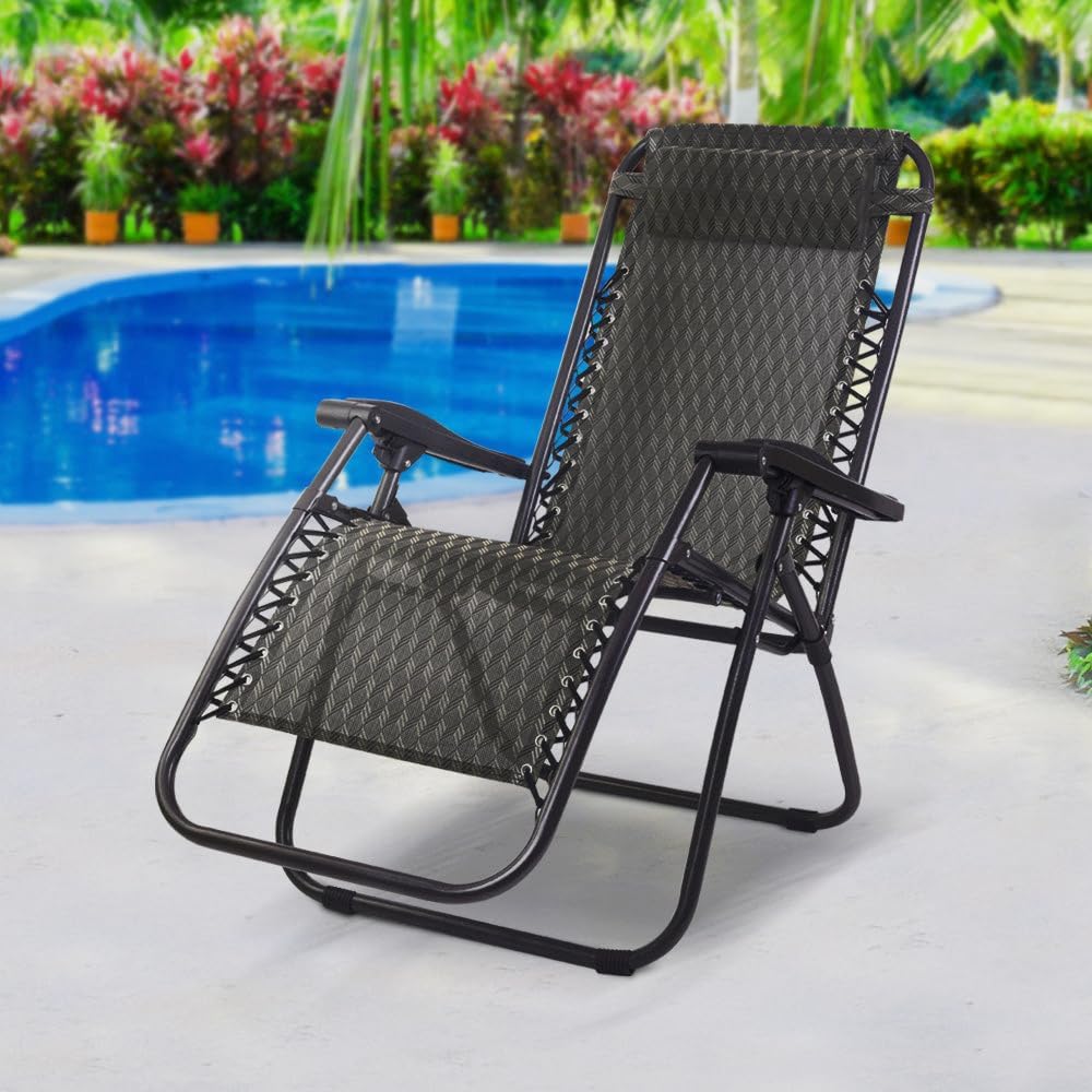HEXARGECKO Reclining Foldable Lounge Chair Zero Gravity Outdoor Chair Camping Chair with Pillow and Hand Rest Adjustable Patio ChairDhs. 159.90