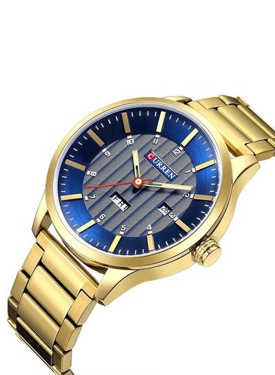 8316 New Men's Fashion Brand Steel Band Week Calendar Life Waterproof Sports Quartz Watches Stainless Steel Men's Watch - Gold