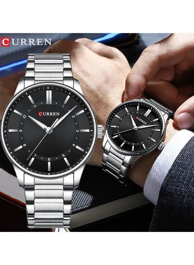 8430 Men's Watch Water Resistant Stainless Steel Quartz Business Wrist Watch - Silver/Black