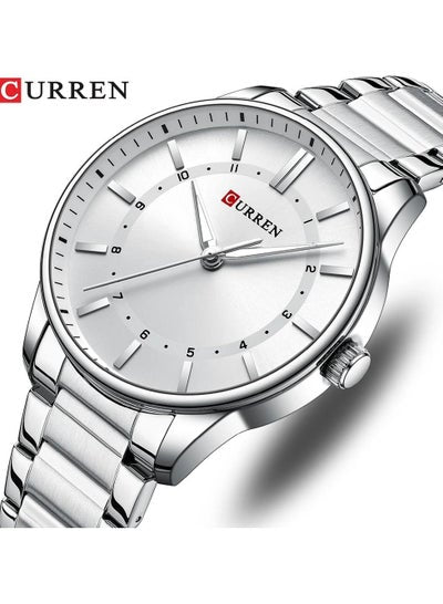 8430 Men's Watch Water Resistant Stainless Steel Quartz Business Wrist Watch - Silver/White