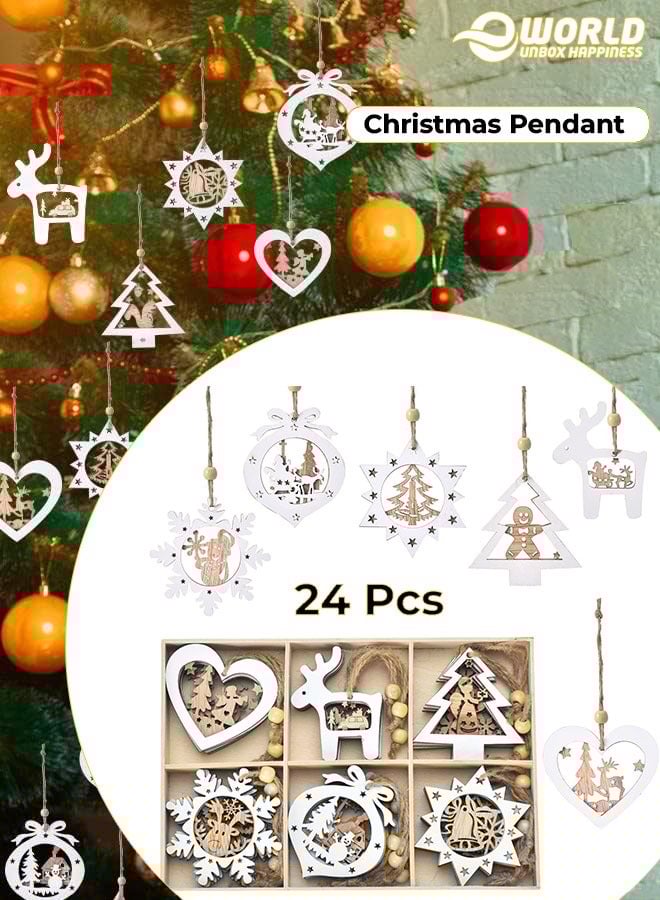EworldEworld Set of 24 Wooden Christmas Tree Ornaments, 3D Rustic Farmhouse Hanging Decorations in 6 Unique Styles, Lightweight and Easy-to-Install Winter Wonderland Holiday Decor for Home, Office and Tree, WhiteDhs. 39.95Dhs. 49.95