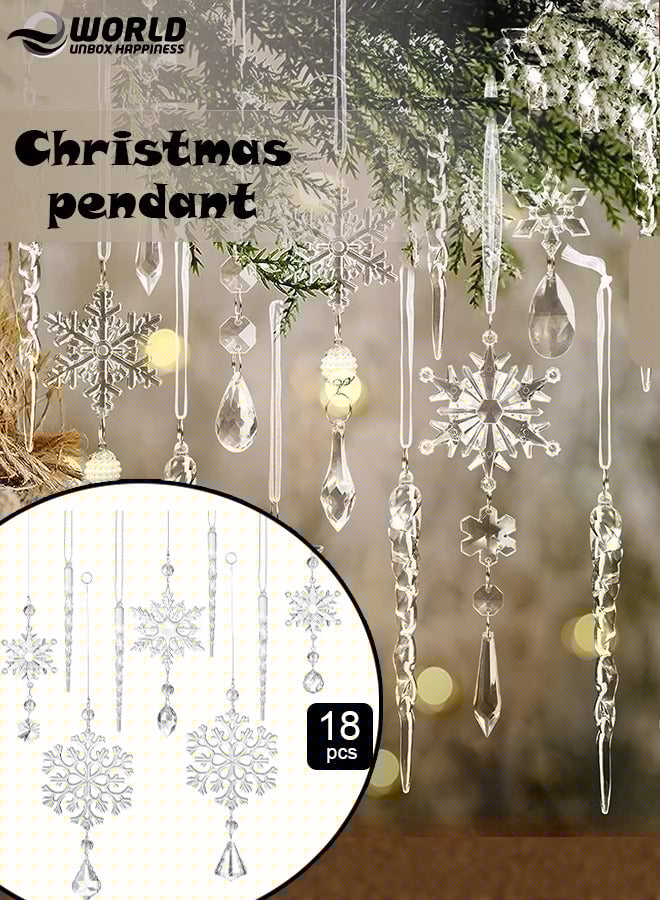 EworldEworld 18-Piece Christmas Tree Crystal Ornaments Set in 5 Unique Styles, Elegant Hanging Acrylic Snowflake and Icicle Decorations with Silver Strings, Perfect for Winter Holiday Decor and New Year Party SuppliesDhs. 34.00Dhs. 45.00