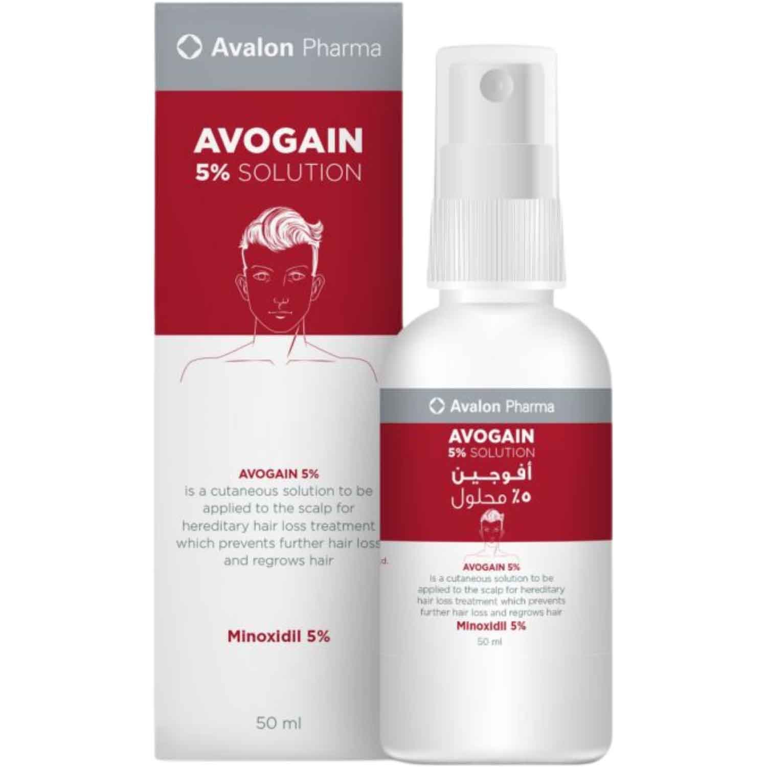 Avogain 5% is a topical solution that stimulates hair growth and prevents hair loss. Its formula provides an effective and safe way to treat hormonal baldness in men and women. This is a cutaneous solution to be applied to the scalp for hereditary hair loss treatment which prevents further hair loss and regrows hair. Minoxidil works by increasing the supply of blood & nutrients to your hair follicles helping to strengthen the existing hairs and encouraging them to grow. When applied topically to the scalp, Minoxidil may stimulate hair growth to a limited extent and is used in the treatment of alopecia.