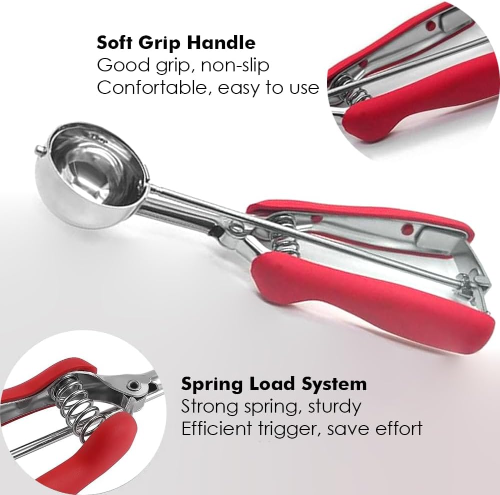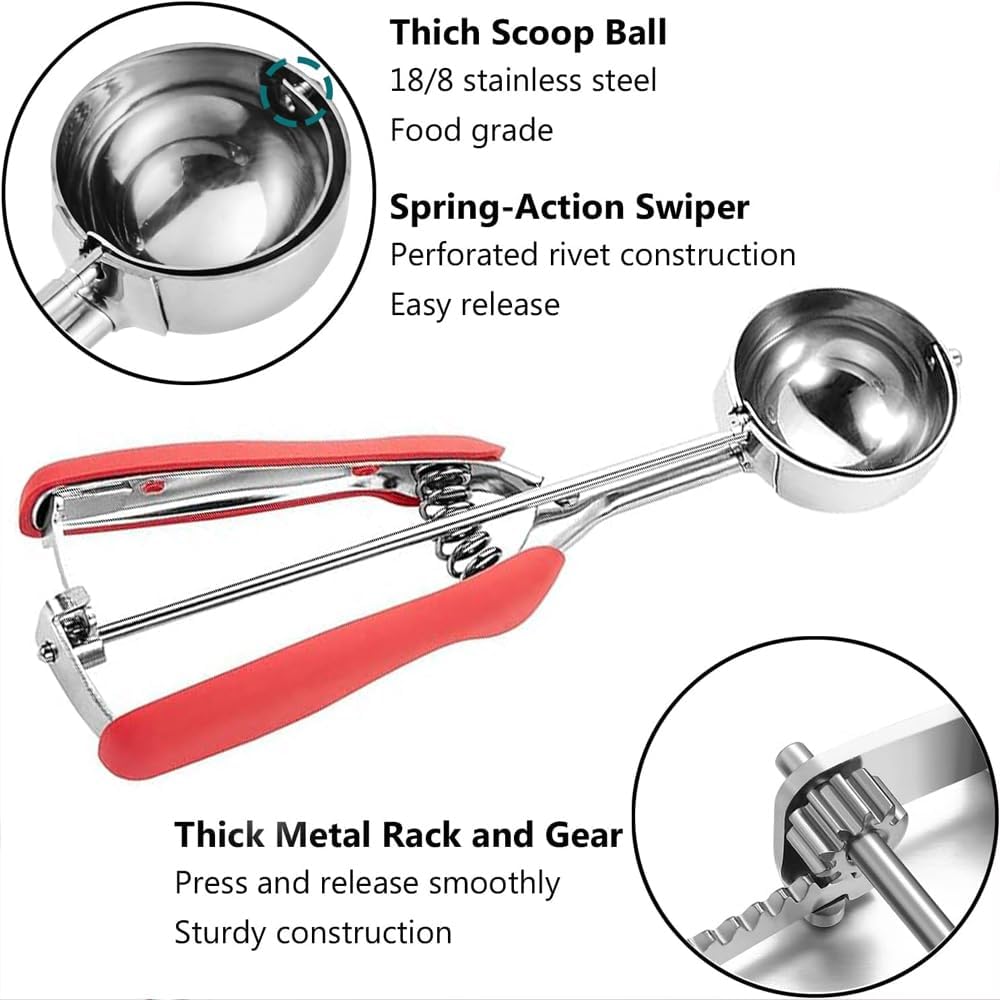 Bechoware Ice Cream Scoop Stainless Steel Cookie Scoop, 6cm Diameter 15ml Ice Cream Scoop Comfortable Grip, Non-Slip Spring Handle