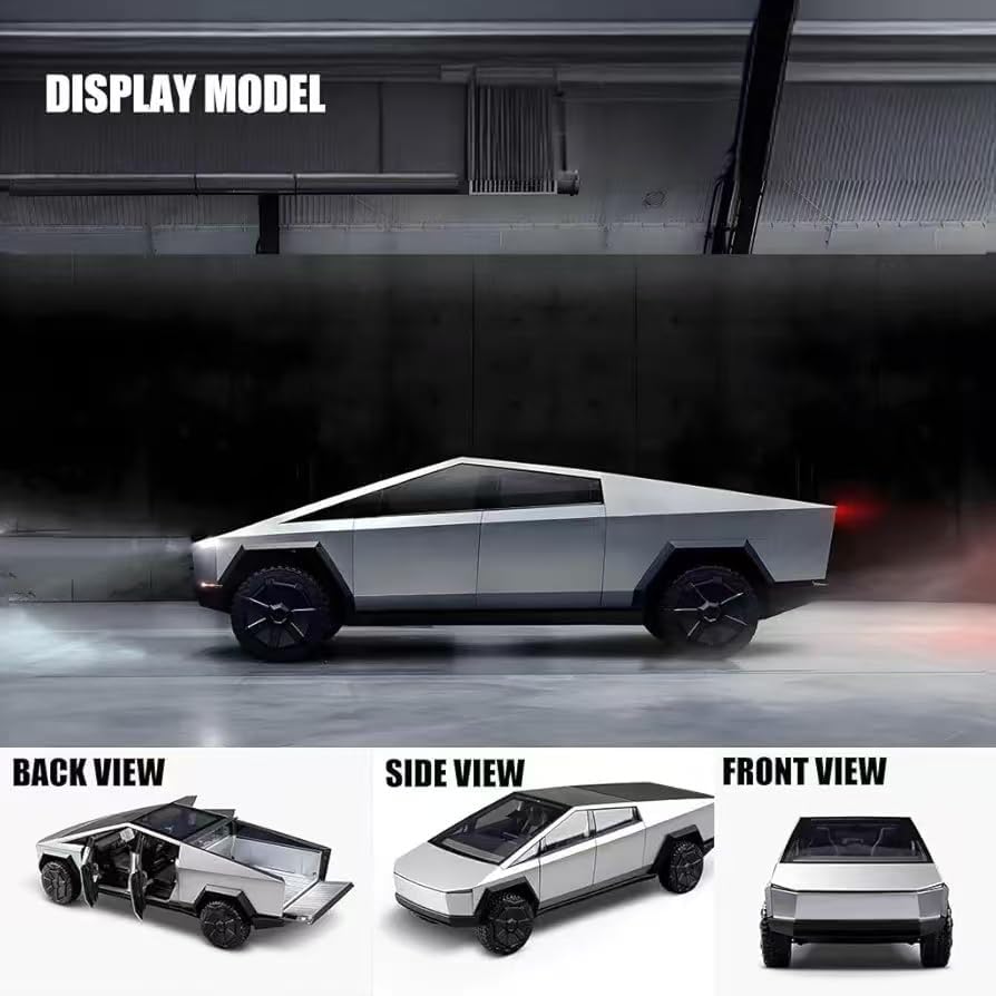 Realistic Design: This 1/32 scale Cybertruck metal diecast model measures 7.0" X 2.5" X 2.8", featuring precise detailing and accurate proportions based on the actual Cybertruck, including a metal body, plastic components, rubber tires, and intricate interior and exterior finishes.
