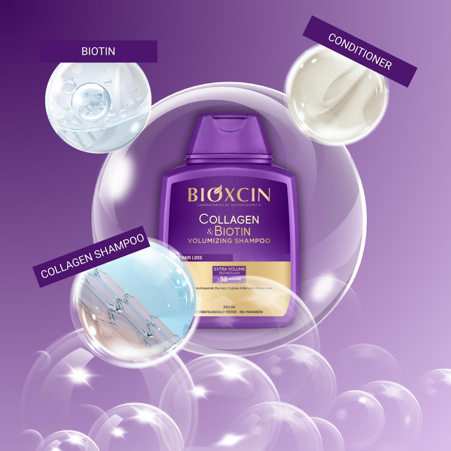 BIOXCIN Collagen Biotin Volumizing Shampoo for Thin and Weak Hair, Extra Volume Strength Sulfate-Free, 300 ml