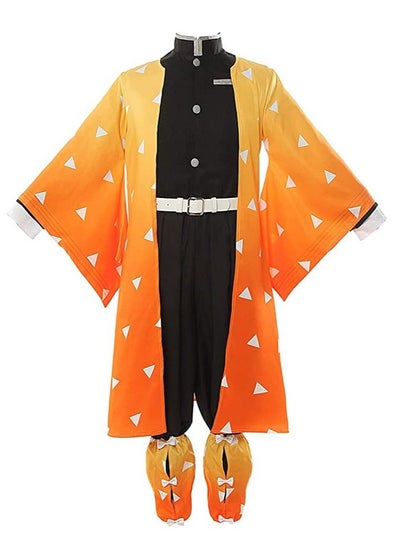 SUPER COOL HALLOWEEN COSTUME FOR DEMON SLAYER: Inspired by Japanese Anime Demon Slayer cosplay , this Halloween costume has all you need to dress up as Demon Slayer, IDENTICAL TO ZENITSU AGATSUMA COSPLAY OUTFIT: Literally gives you everything you need, you will get what you see. Halloween Costume set of 6 pieces includes- 1 Zenitsu Demon Slayer Kimono, 1 Black Uniform, 1 Samurai Pants, 1 Belt and 2 leg wraps. The, SIZE: The size of the Demon Slayer Costume is 150 cms. It is an ideal Halloween costume for teens and adults, HIGH QUALITY: Demon Slayer Cosplay Costume is made with high quality, soft and breathable fabric, the same printing as anime characters. The Zenitsu Agatsuma cosplay costume is super comfortable to wear., SUITABLE OCCASION: Our Demon Slayer Costume set is perfect for Halloween Costume, Cosplay, Role Playing, Carnival Costume or just for fun!,