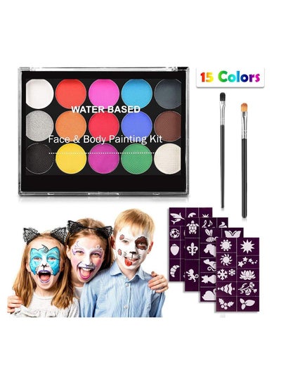 A Complete Face Paint Set - There are 15 colorful face and body paints and 2 professional art brushes in palette. Never again get stuck with no ideas for face designs. We've included 40 of the most popular unisex stencils in the kit., 100% Satisfaction - If for any reason you are unhappy with our product, please do not hesitate to contact us. We take full ownership and responsibility for the quality of our products and will do our best to solve your problem quickly and efficiently, Various Application - Ideal for creating crazy looks! school, church, festivals, carnivals, birthday parties, anniversaries, cosplay makeup, army camouflage sports & football events, stage performances, role play, Fancy ball, Fancy Dress., Your Kid’s Safety First - Our face paint kit for kids are 100% FDA compliant which makes it ideal for toddlers with sensitive skin. Colorful Arts Cosmetic Grade face painting sets are hypoallergenic, vegan & Paraben-free, completely nontoxic., Easy to Use and Wash - Our face paints colors are water activated and works the same way as watercolor paints. Add a few drops of water to the desired color to make the surface soft and pasty then use the brush to apply it smoothly on the skin.,