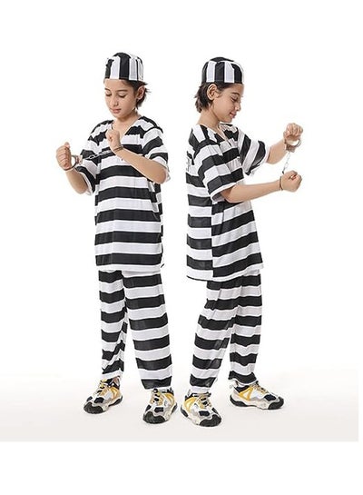 This is a traditionally styled boy's Convict fancy dress costume which comprises of a black and white stripped short sleeved convicts top and a pair of matching trousers which have an elasticated waistband for a comfortable fit., The cosplay costume made of high-quality material, it is not easy to break, can be reused, and is durable., This costume can also be used as a photo prop, which must be very eye-catching., This costume is the perfect holiday gift for relatives, friends and children on the occasion.,