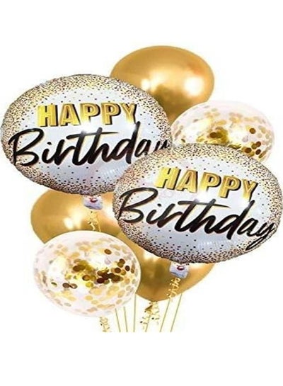Brain Giggles Set of 7 Pcs Gold foil Printed Balloons Combo for Golden Balloon Decoration/Girls Birthday Decoration