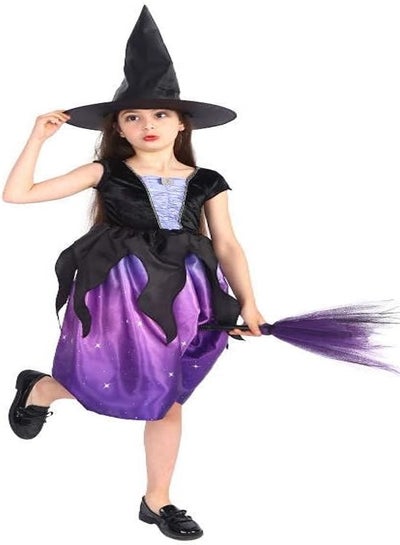 WITCH COSTUME FOR KIDS: A strikingly spooky dress Witch costume can be used by kids dress up as a witch and start for spooky costume or a cosplay costume during role playing., MATERIAL: The Witch costume for kids is made from high-quality, lightweight, gentle to the skin, comfortable, and nice design. It is machine washable for repeated use., EASY AND PRACTICAL: The Witch costume dress with ombre printed bodice and a voluminous layered skirt includes black hat for easy kid's wearing., SIZE: The Witch costume comes in 3 different sizes., (4-6 years), (7-10) and (11-14years)., SUPER COOL COSTUME FOR KIDS: Transform your little girl into a spellbinding sorceress with our high-quality and whimsical witch costume, designed to bring joy and enchantment to any celebration., SUITABLE OCCASION: Our costume is perfect for this coming season, pretend play, trick-or-treating cosplay costumes, imaginative play, or just for fun! Suitable girls as a professional costume for kids.,