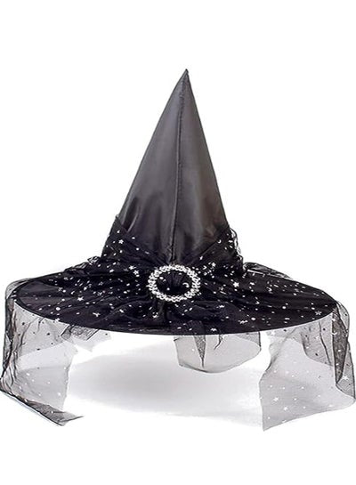 Brain Giggles Witch Hat Mesh Adult Children Wizard Witch Hat for Masquerade Party Cosplay Accessory - Black