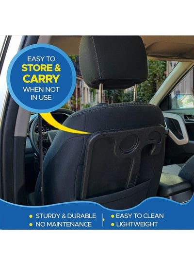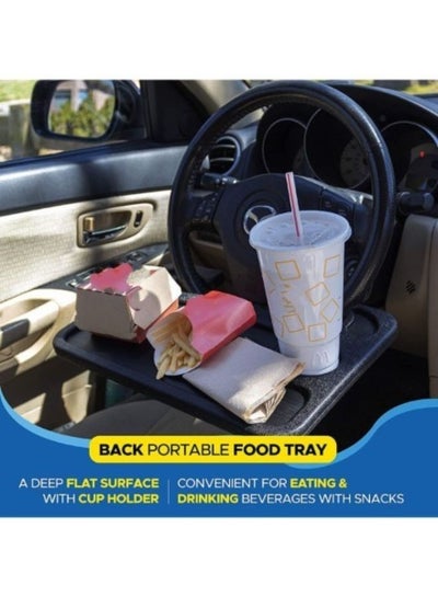 This steering wheel tray is the perfect accessory to have in your car for a quick snack or breakfast or to get a small office while traveling., The car tray is slim and lightweight and almost doesn’t take up space when not needed, just store in the back of the seat pocket. Easy and convenient to use., One side of the steering wheel tray has a deep cup holders and a deep flat surface at one side to enjoy your food on the wheel not to fall off, while another side have a flat surface and a pen holder., Portable food table is a multipurpose travelling tray for car that can be used for reading, writing, eating, working with laptop or a tablet, eating on the wheel and for leisure use., The laptop holder/table for car is made of high quality ABS material which sturdily mounts on the steering wheel in few seconds offering safe and ergonomic workspace for mobile workers.,