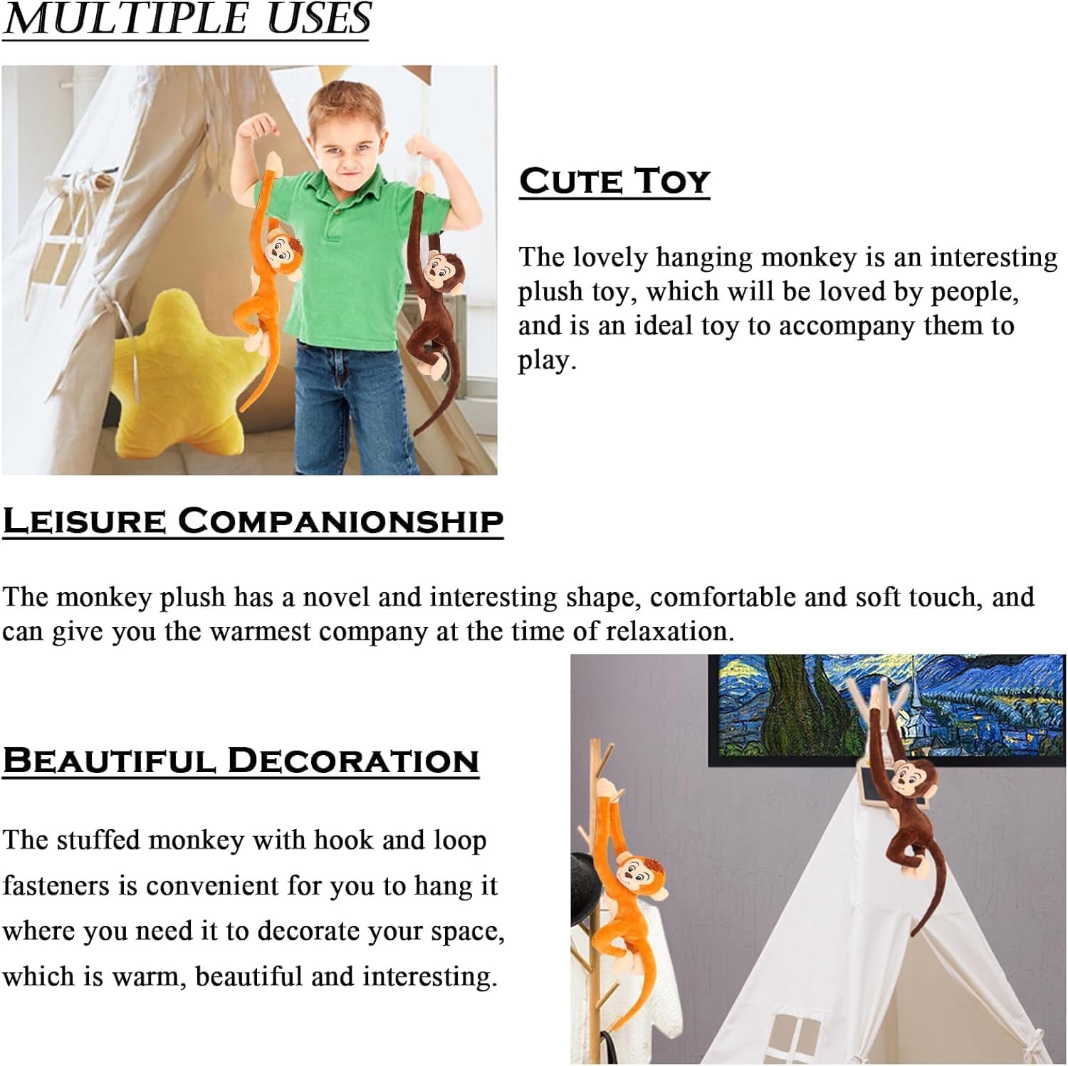 Hanging Design: Each monkey has a flexible, elongated body that allows it to hang or dangle from various surfaces, encouraging imaginative play.