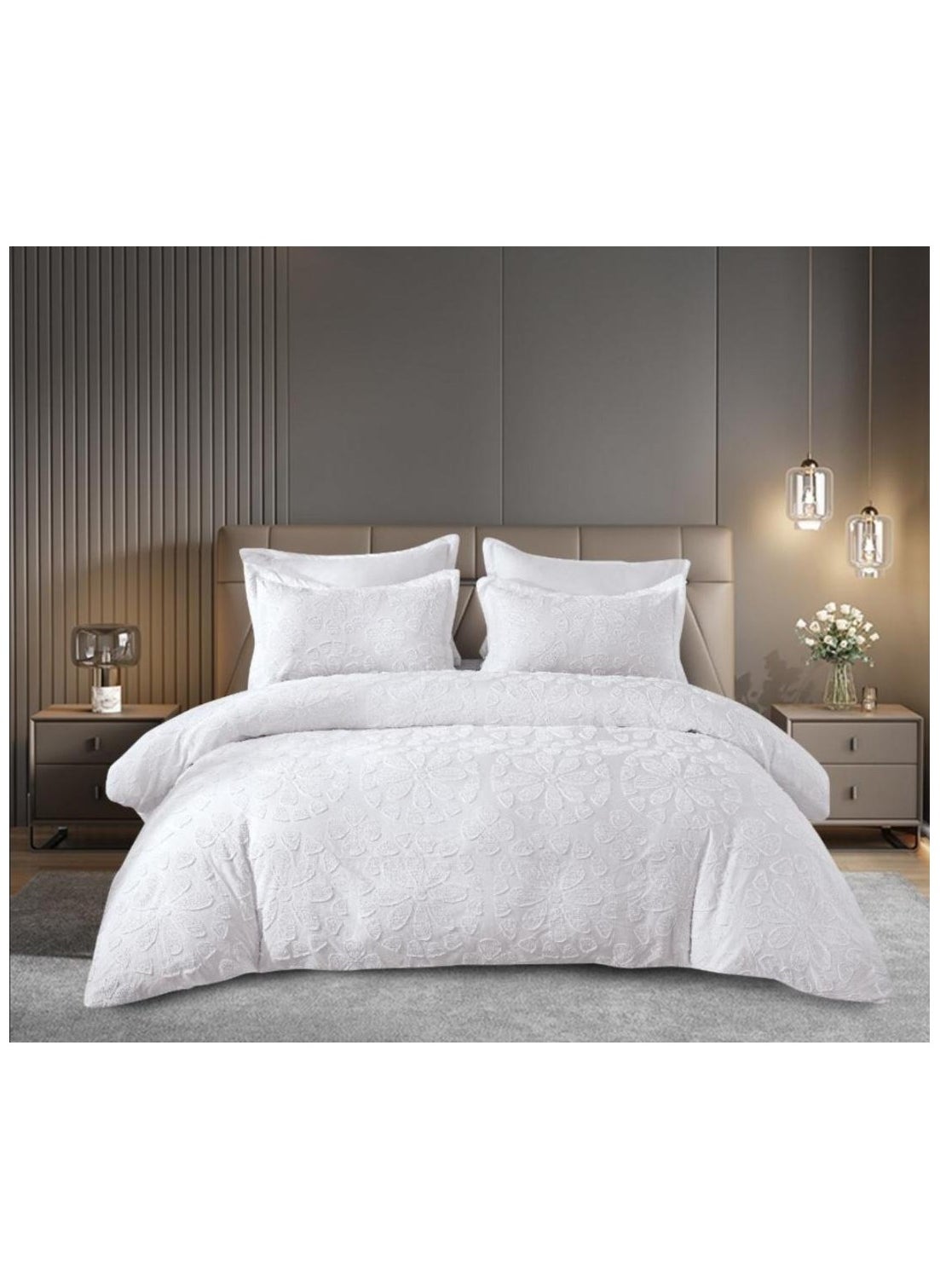COMFY 6 PC KING SIZE EMBROIDERED PREMIUM COTTON FLORAL DESIGN COMFORTER SET WHITE