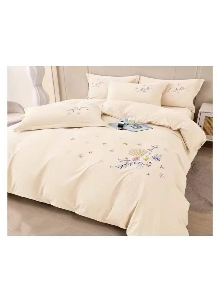 COMFY KING SIZE 6PC FLORAL COTTON PREMIUM EMBROIDERED COMFORTER SET CREAM