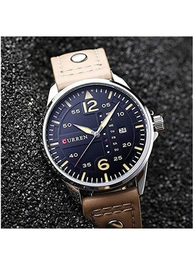 CURREN 8224 Men's Leather Round Analog with Date Display Watch (Beige, Black )