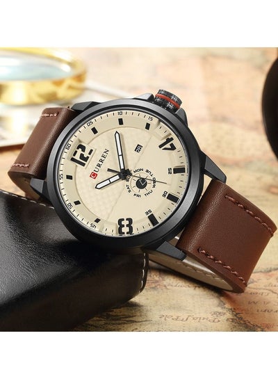CURREN 8253 Men Japan Quartz Analog Watch Fashion Casual Leather Strap Week Display Business Wrist Watch