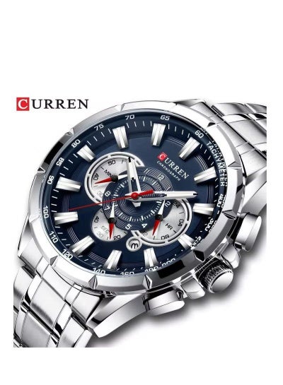 Curren 8363 Men's Waterproof Chronograph Military Army Stainless Steel Watch - Silver