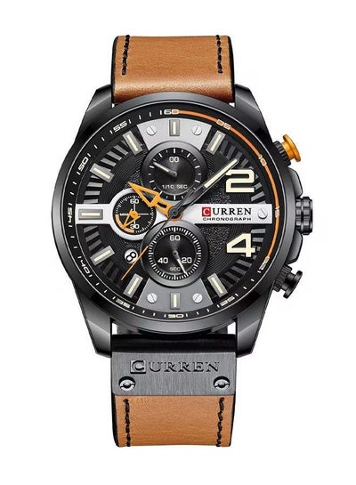 Curren 8393 Original Grey Leather Strap Watch for Men - Brown/Black