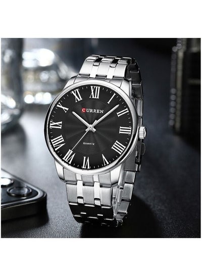 CURREN 8422 Luxury Sport Watch Men Waterproof Quartz Wristwatches Military Stainless Steel Black Men Watch Silver