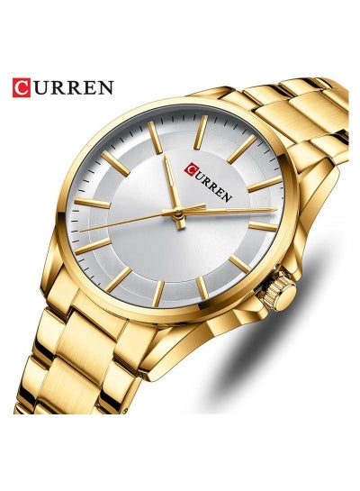 CURREN 8429 Luxury Sports Watch Men Stainless Steel Quartz Chronograph Waterproof Military Business Black Watch Gold/White