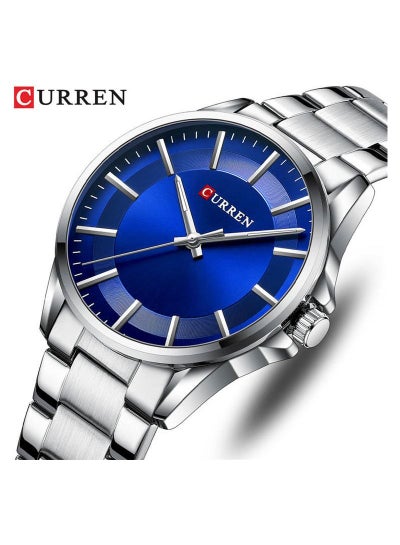 CURREN 8429 Luxury Sports Watch Men Stainless Steel Quartz Chronograph Waterproof Military Business Black Watch Silver/Blue