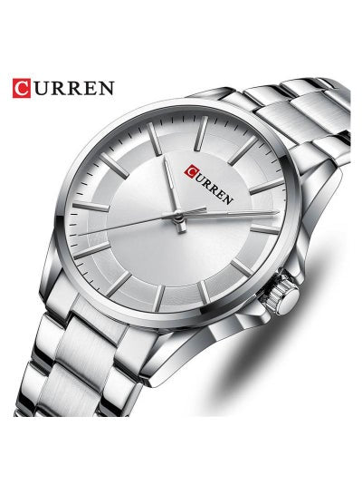 CURREN 8429 Luxury Sports Watch Men Stainless Steel Quartz Chronograph Waterproof Military Business Black Watch Silver/White