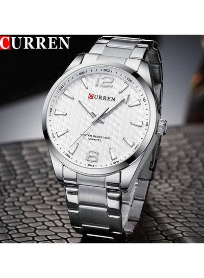 CURREN 8434 Men's Luxury Sport Watch Stainless Steel Quartz Bracelet Waterproof Military Style - Silver/White