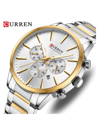 Curren 8435 Stylish Design Men's Watch, Luminous Display, Automatic Date Calendar, Luxury Wrist Watch - Silver/Gold