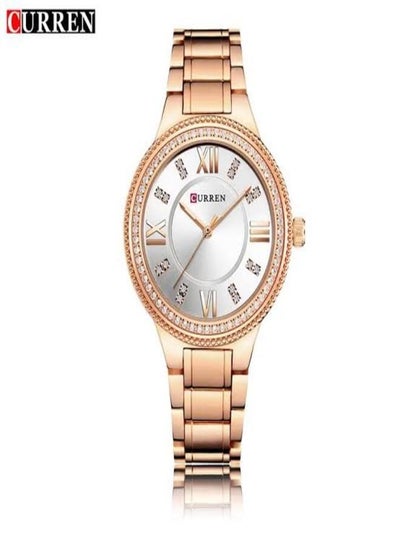 CURREN 9004 Brand Luxury Women's Casual Watches Waterproof Wristwatch Women Fashion Dress Rhinestone Stainless Steel Ladies Clock-Rosegold & White
