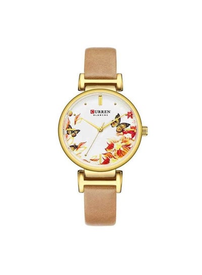 The CURREN 9053 Women's Quartz Watch is a stylish and elegant timepiece designed for women. It features a round stainless steel case with a diameter of 33mm and a thickness of 10mm. The case is complemented by a Leather Band that is 19mm wide and features a fold-over clasp with a safety release.