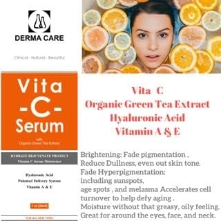 Derma care Vita C Serum anti aging with organic green tea extract and Hyaluronic Acid & vitamin A&E 30 ml
