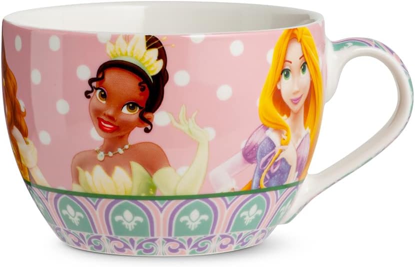 Begin your day with a dose of enchantment with the Egan Disney Princess Breakfast Mug. This beautifully designed mug features exclusive artwork of four beloved Disney Princesses: Cinderella, Ariel, Belle, and Snow White. Each princess is depicted in vibrant, intricate detail that brings the magic of Disney right to your kitchen. With a substantial 520 ML capacity, this mug is perfect for those who love a large cup of coffee to start their day or a generous portion of tea or hot chocolate. The size is just right for keeping you refreshed and energized throughout your morning routine. Crafted from high-quality New Bone China, this mug is not only visually stunning but also built to last. The premium material ensures a refined finish and that your beverages stay at the perfect temperature for longer, whether you're enjoying a hot drink or something chilled. The durable construction also means this mug can withstand daily use without losing its charm. Convenience is key with the Egan Disney Princess Breakfast Mug. It's both microwave and dishwasher safe, making it incredibly easy to reheat your drinks and clean up afterward. No more worrying about hand washing or damaging the beautiful design – this mug is made to be both functional and beautiful. The Egan Disney Princess Breakfast Mug measures 8.3×11.3 cm, making it the perfect size for a satisfying drink. Treat yourself to a pleasant, relaxing break with this charming Disney mug, bringing a touch of magic to your everyday moments. This mug makes an excellent gift for Disney fans of all ages. Whether it's for a birthday, a holiday, or just because, the Egan Disney Princess Breakfast Mug is sure to bring a smile to any Disney lover's face. Add a touch of Disney magic to your mornings or delight a loved one with this enchanting and practical gift. Bring home the Egan Disney Princess Breakfast Mug today and let the beloved princesses brighten your day with every sip.