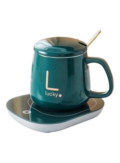 Electric Coater Mug Warmer With Lid And Golden Spoon 380 ml 15 W Luck-367 Dark Green