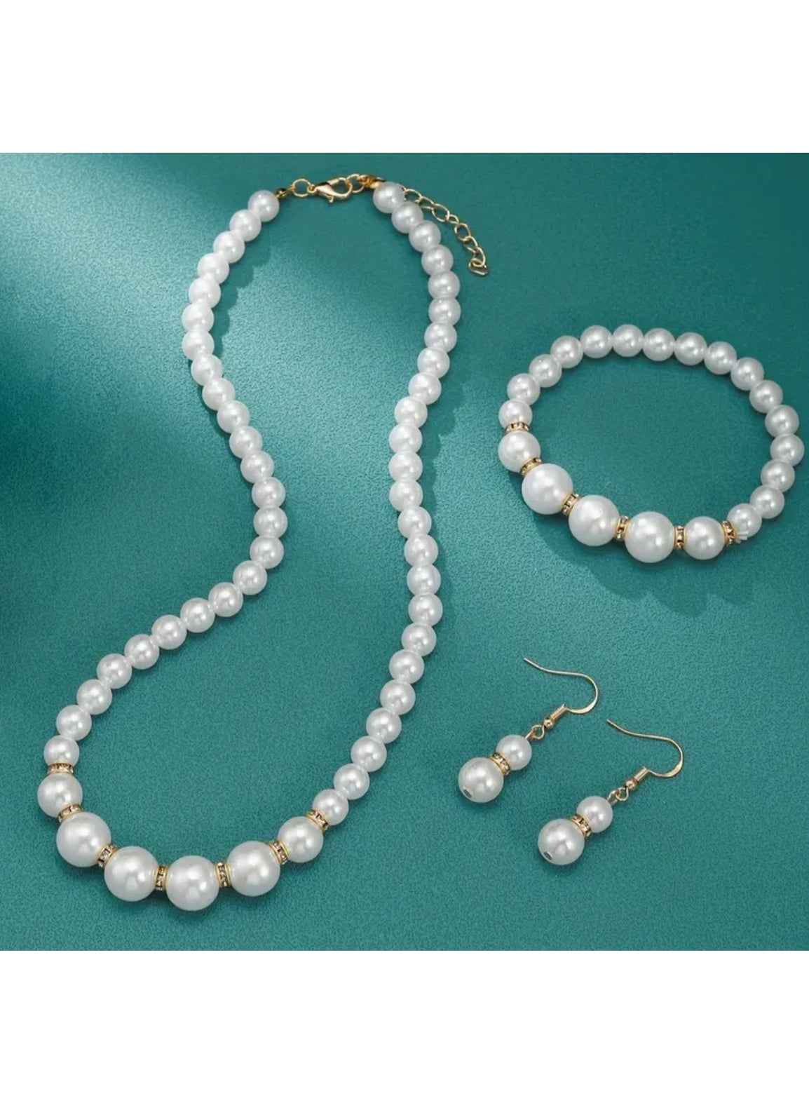 Elegant Pearl Luxury Dangle Earrings, Necklace & Bracelet Set - Resin, Sparkling Rhinestones, Ideal for Weddings & Formal Events, Wedding Jewelry