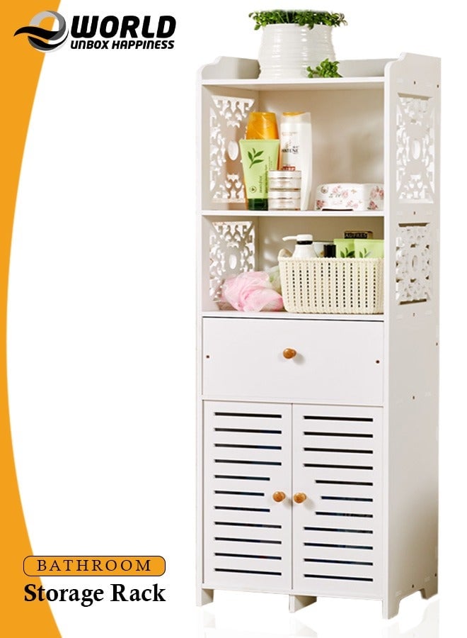EworldEworld Waterproof White PVC Floor Cabinet Organizer, Stylish Storage Solution Featuring Shelves, Drawer, Tissue Holder, and Door for Bathroom, Kitchen, Living Room, or Bedroom Accessories, Available in 2 SizesDhs. 299.00