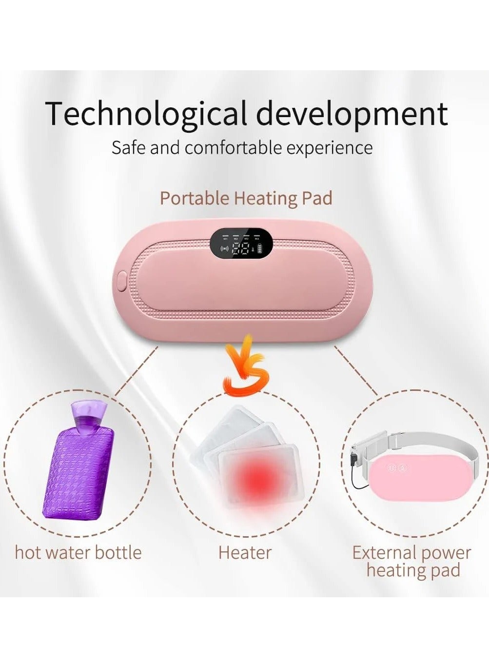 Eworld Portable Cordless Heating Pad for Period Cramps Relief, Rechargeable Electric Heat Belt with 3 Adjustable Heat Levels and 4 Vibration Modes, Perfect Gift for Women and Girls, Pink