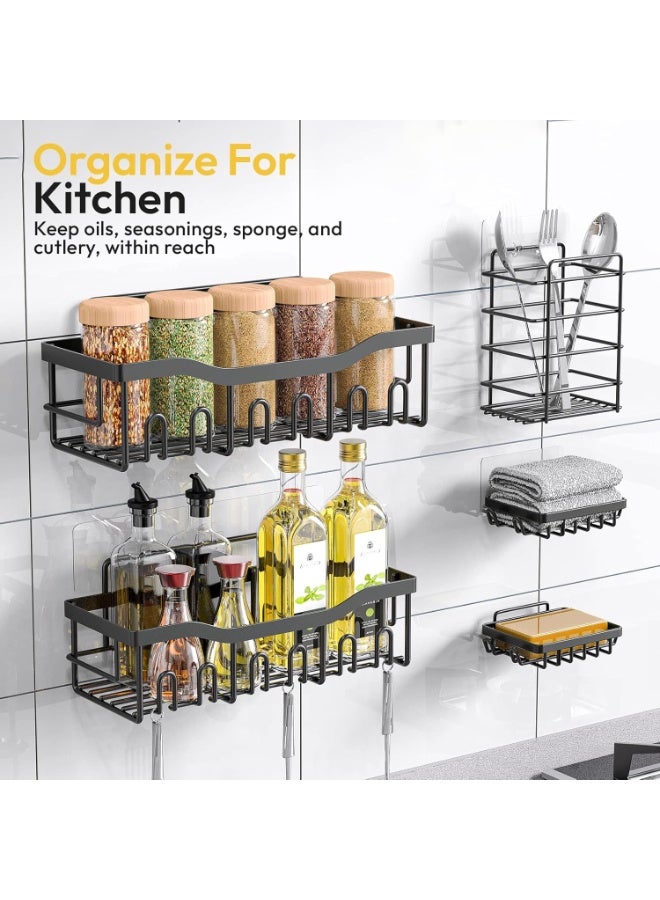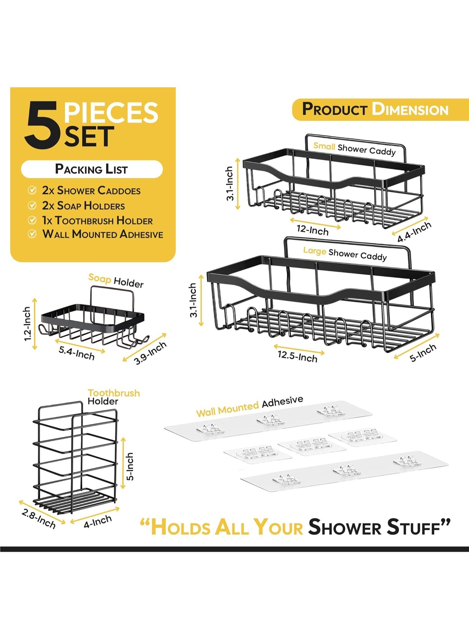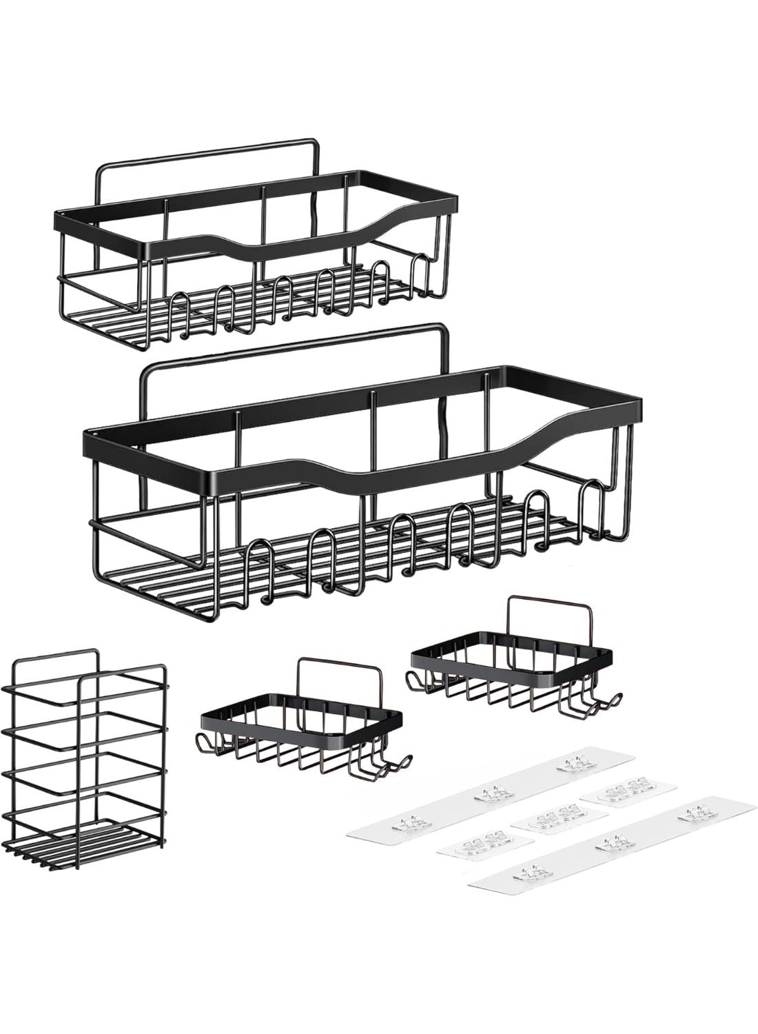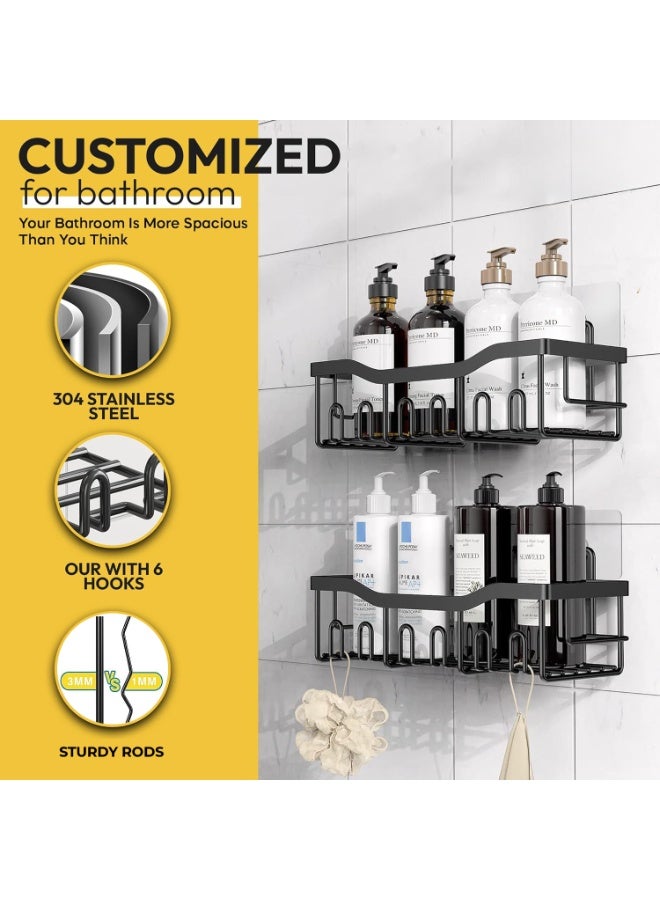 Eworld Shower Caddy Set of 5 – 2 Large Stainless Steel Racks with Hooks, 2 Soap Holders & 1 Toothbrush Holder, No-Drill Adhesive Wall Mount Bathroom Organizer